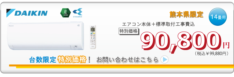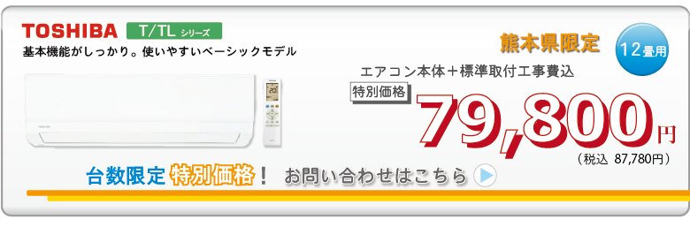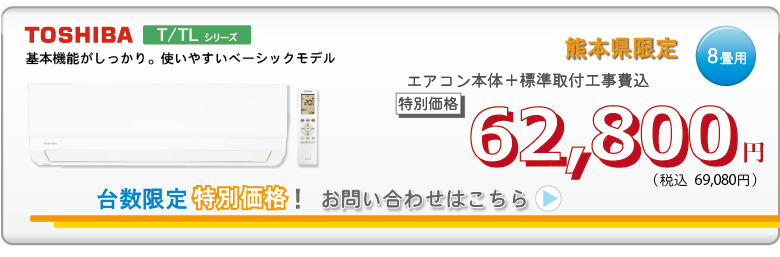 熊本県内のお客様に限り、東芝ルームエアコン(2025年製/6畳用 RAS-2214TL)を、特別価格、エアコン本体と標準工事費込の54,500円(税込59,950円)で販売いたします。 冷暖房の工事に関して実績30年以上。 電化製品の設置や工事はもちろん、 通販やインターネットで購入した 業務用エアコン・空調機器の工事、 地デジ・BS・CS等、 株式会社シーエスワンが、